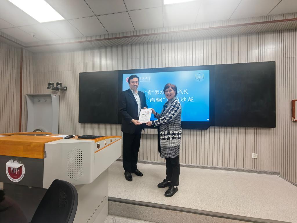 活动前,刘红英部长为王鹤老师颁发特邀成长导师聘书。