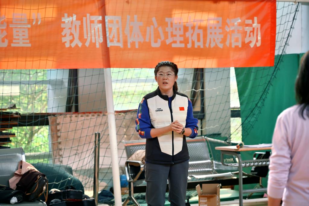 本次活动特邀我校体育科学学院艾丽欣老师引导,她凭借专业的运动心理学和团体心理辅导等相关知识,带领老师们凝心聚力,共同完成了一场深入人心的团队心灵之旅。活动现场气氛热烈,老师们积极配合,通过“松鼠搬家”快速破冰,拉近彼此之间距离,“趣味接力赛”“心有千千结”“情绪垃圾站”“默契穿越”“击鼓颠球”各环节层层递进,老师们一步步卸下工作中的疲惫,感受心与心的交流,体验彼此默契配合、团队协作的力量,将“情绪包袱”转化为彼此的共情与鼓励。在沉浸治愈的舒压氛围里释放内心压力,以更积极、更强健的心理状态为教育工作蓄力。