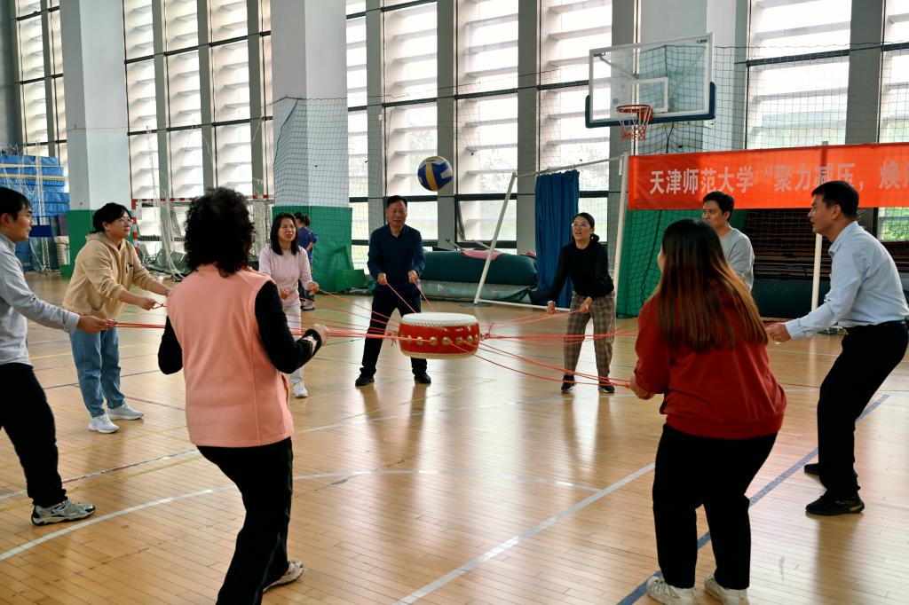 为加强教师关心关爱,落实尊师惠师若干举措,有效帮助教师释放压力,培育理性平和、积极向上的健康心态,提升教师心理健康素养。10月15日下午,我校在体育馆二楼篮球场成功举办“聚力减压,焕活‘心’能量” 教师团体心理拓展活动。各基层党委、党总支教师工作干部,机关各部门干部20余人参加。活动由党委教师工作部(教师发展中心)部长(主任)刘红英主持。