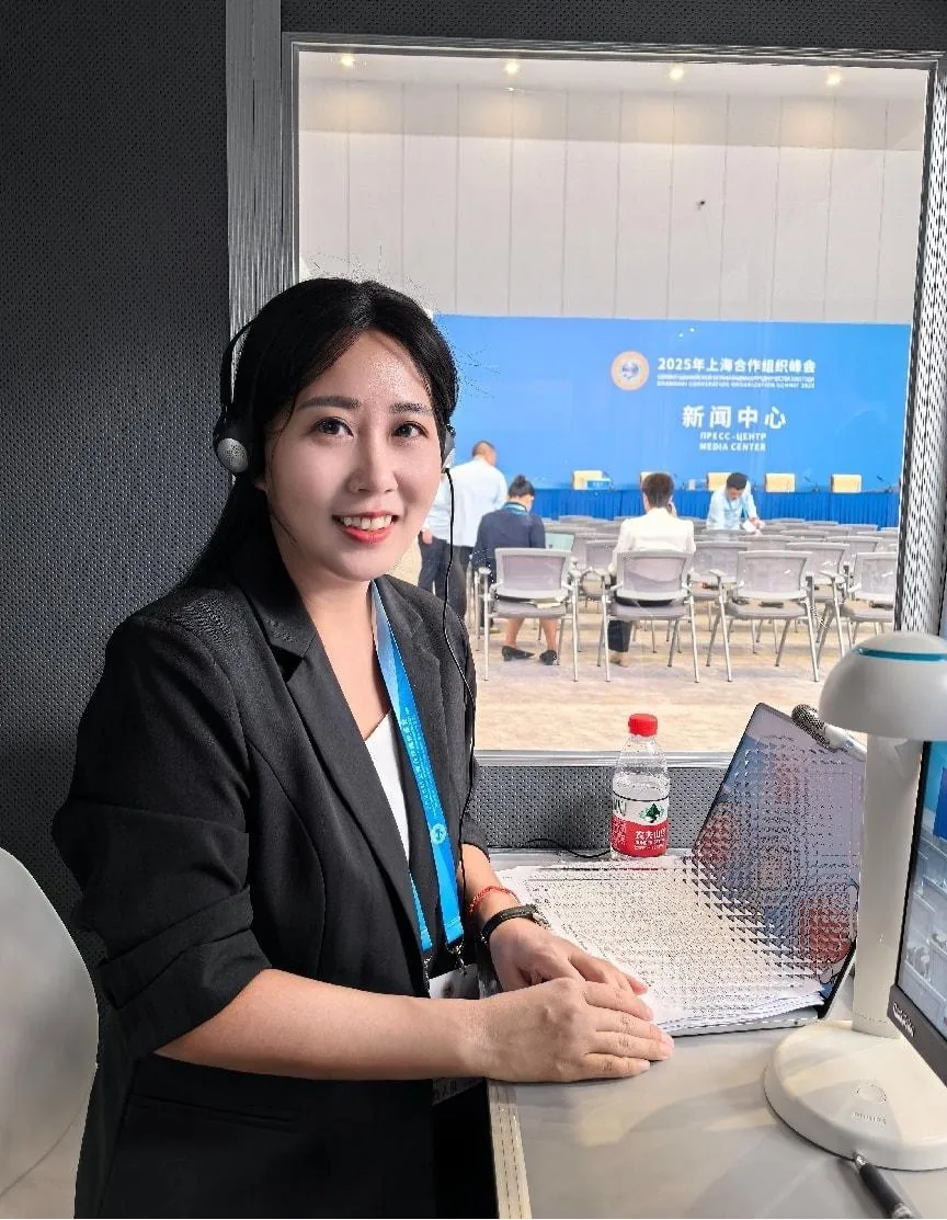 俄语系姚雪老师作为团队骨干成员,展现了卓越的专业素养和奉献精神。从4月10日的首场活动到9月1日峰会闭幕,她连续承担多场高级别会议的俄语同传、交传工作。特别是在乌兹别克斯坦总统夫人参访天津博物馆活动中,她以精准的翻译和得体的举止,赢得了外宾和市领导的高度评价。此外,她还独立完成了八集峰会配套纪录片《微乎大观》俄语版的翻译工作,该片通过中国国际电视台CGTN俄语频道播出,为有效传播峰会精神与中国声音贡献了力量。